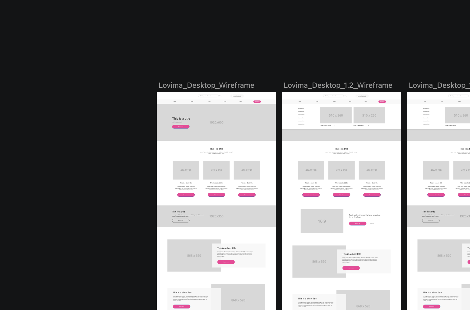 Before moving into visual design, I created wireframes for both mobile & desktop across the main Lovima website & the HCP portal.